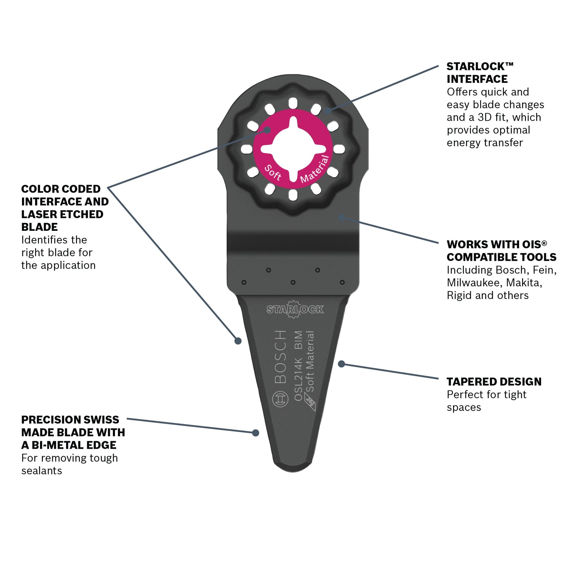 - BOSCH OSL214K-10 Hoja de cuchillo para calafateo oscilante Starlock® de 2-1/4 pulg. Paquete de 10.