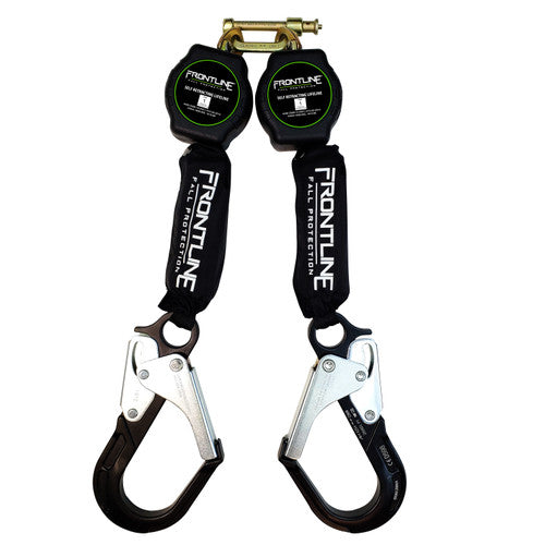Cuerda de seguridad autorretráctil de dos patas y tejido de fibra de aramida Frontline RPA062R de 6 pies con extremos de gancho de varilla de refuerzo de acero