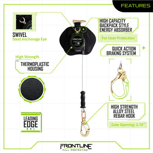 ¿Trabaja cerca o alrededor de posibles caídas sobre bordes, como techos, bordes de ataque, aplicaciones de acero, amarres a nivel del pie a 90 grados o más, u otras aplicaciones similares? La serie Frontline Leading Edge es la solución ideal para brindar la mejor protección ante estos riesgos de caída. Utilice la serie Frontline Leading cómodamente, ya sea en aplicaciones con o sin bordes de ataque, para una mayor variedad y máxima usabilidad del producto. Fabricados para superar las expectativas y probados por un laboratorio independiente acreditado según la norma ISO 17025:2017, estos SRL Leading Edge son robustos, duraderos y brindan a los usuarios la confianza necesaria para realizar su trabajo con tranquilidad cuando se requiere protección contra caídas.