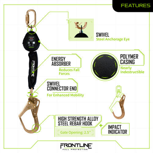 Las líneas de vida autorretráctiles Frontline son la solución ideal para trabajos en altura, donde una reacción rápida y segura es fundamental. Diseñadas para funcionar y activarse en segundos en caso de caída, las líneas de vida autorretráctiles Frontline ayudan a limitar la distancia de caída libre y a reducir los impactos en el cuerpo, brindando una experiencia de trabajo más segura. Fabricadas para superar las expectativas y probadas por un laboratorio independiente acreditado según la norma ISO 17025:2017, estas líneas de vida autorretráctiles son robustas, duraderas y brindan a los usuarios la confianza necesaria para realizar su trabajo con tranquilidad cuando se requiere protección contra caídas.
