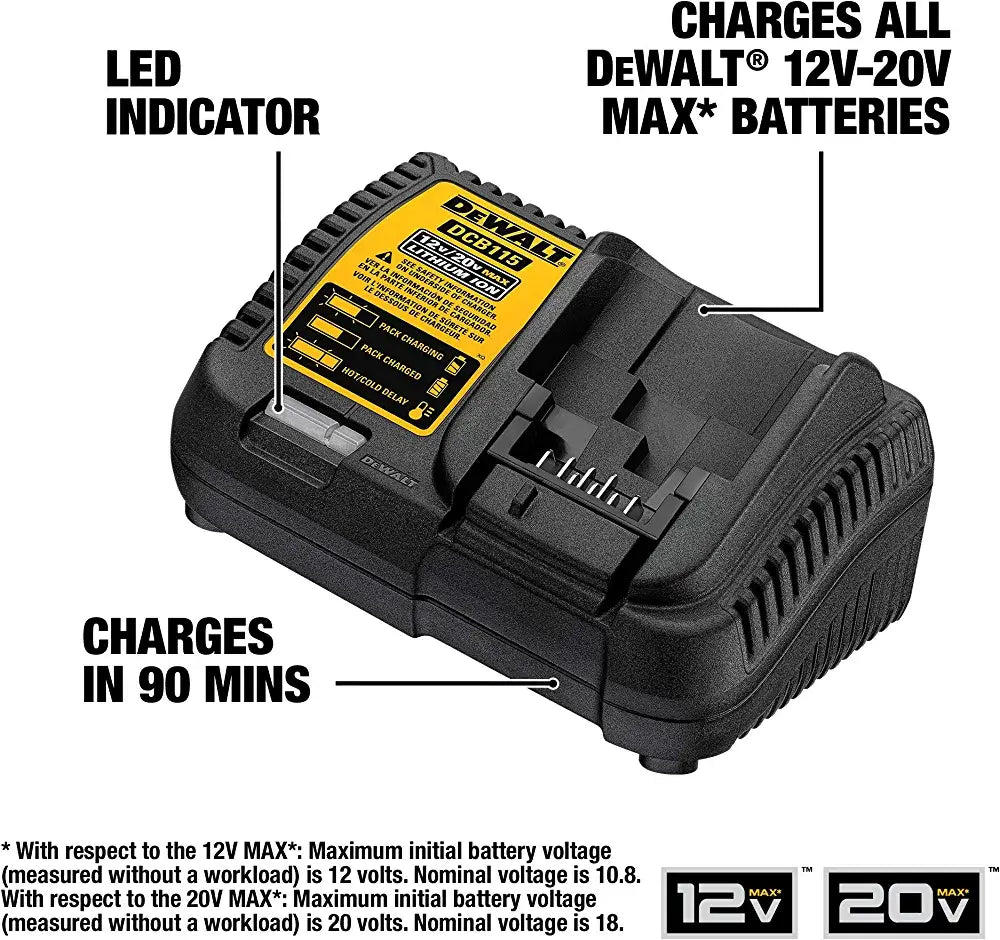 - Cargadores para todas las baterías de iones de litio DEWALT(R) de 12 V a 20 V MAX*