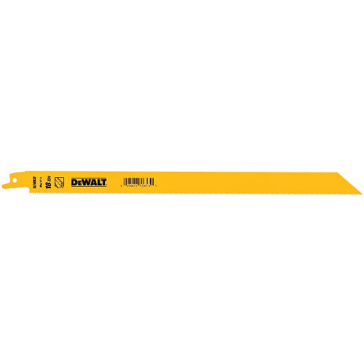 - Hoja recíproca bimetálica DEWALT DW4822 de 12 pulgadas y 18 dientes por pulgada (paquete de 5)