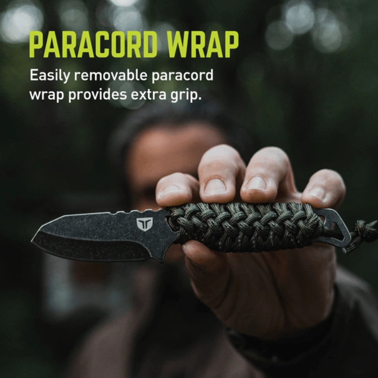 El diseño de espiga completa garantiza máxima resistencia y durabilidad, garantizando que el cuchillo resista incluso las condiciones más adversas. El mango esquelético envuelto en paracord proporciona un agarre cómodo y seguro, brindándole control total sobre los movimientos de la hoja.
