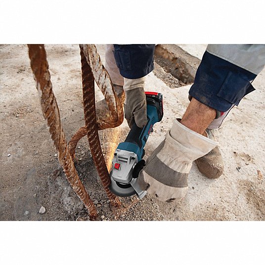 The Bosch GWS18V-45 18-Volt 4-1/2-Inch Angle Grinder is an ideal portable cordless grinder for electricians, plumbers and others who need professional power. With its four-brush motor design and optimized gear structure, it provides a 0-10,000 no-load rpm, to handle cutting and grinding applications. It features a two-position Vibration Control side handle for better handling and less operator fatigue. It is designed for long tool life, with Bosch's Electronic Cell Protection and Electronic Motor Protection, optimized brush design. For user protection, this cordless grinder was engineered with a toolless quick-change, burst-resistant wheel guard and restart protection to avoid accidental startup.
