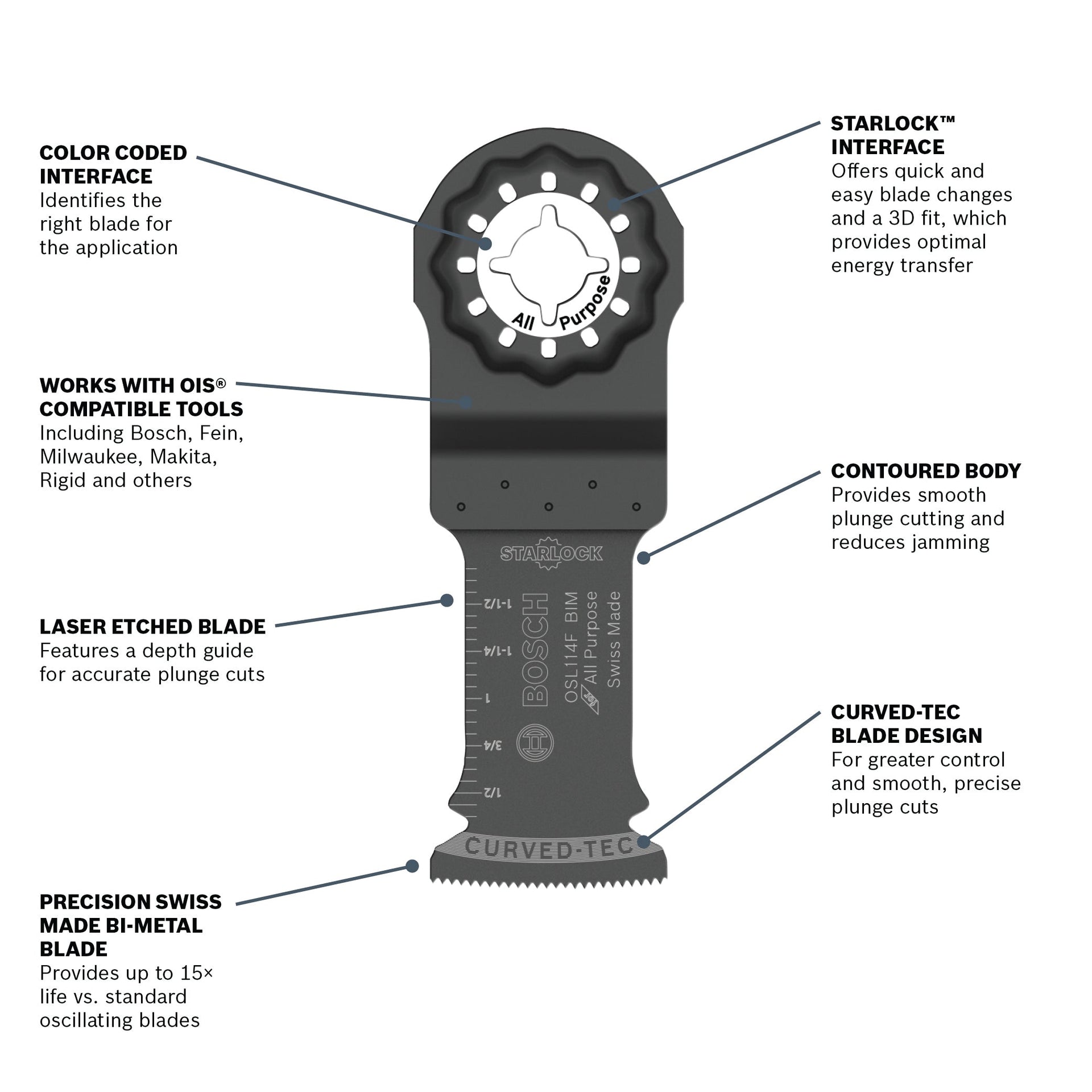 - Starlock® interface for professional performance, also works with OIS® compatible tools including Bosch, Fein, Milwaukee, Makita, Rigid, others
