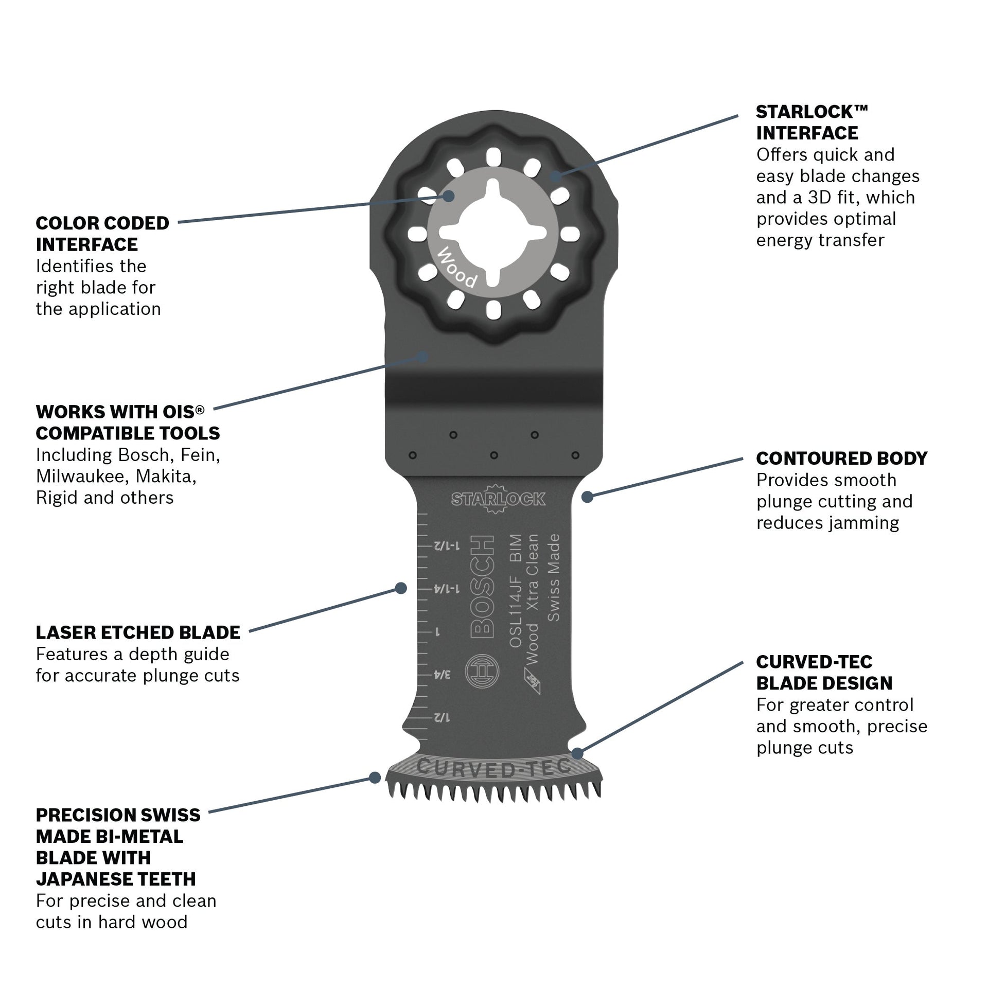 BOSCH OSL114JF 1-1/4 In. Starlock® Oscillating Multi Tool Bi-Metal Xtra-clean Clean Plunge Cut Blade
