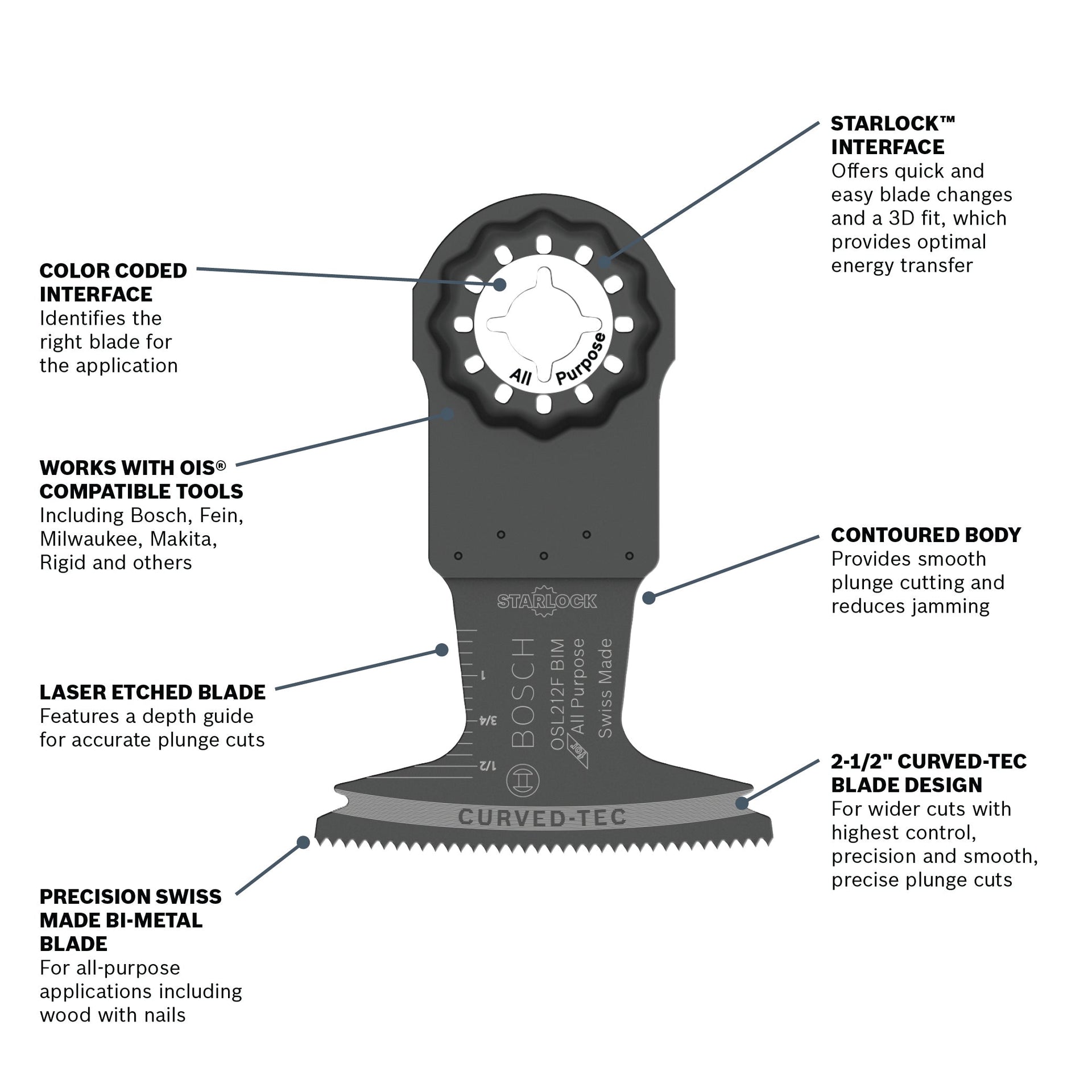 BOSCH OSL212F 2-1/2 In. Starlock® Oscillating Multi Tool Bi-Metal Plunge Cut Blade