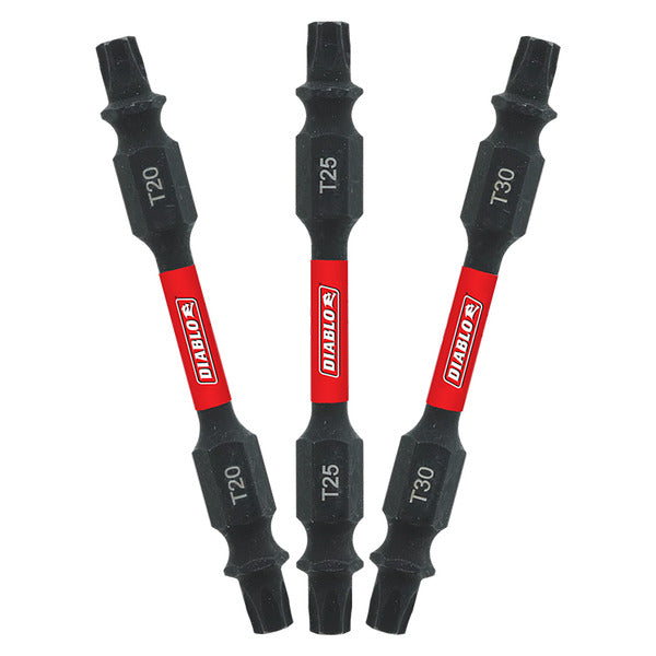 Assorted pack includes three double-ended Torx drive bits: #20, #25 and #30