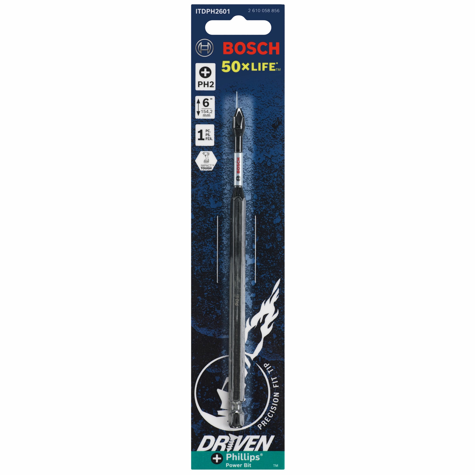 - BOSCH ITDPH2601 Driven 6 In. Impact Phillips® #2 Power Bit