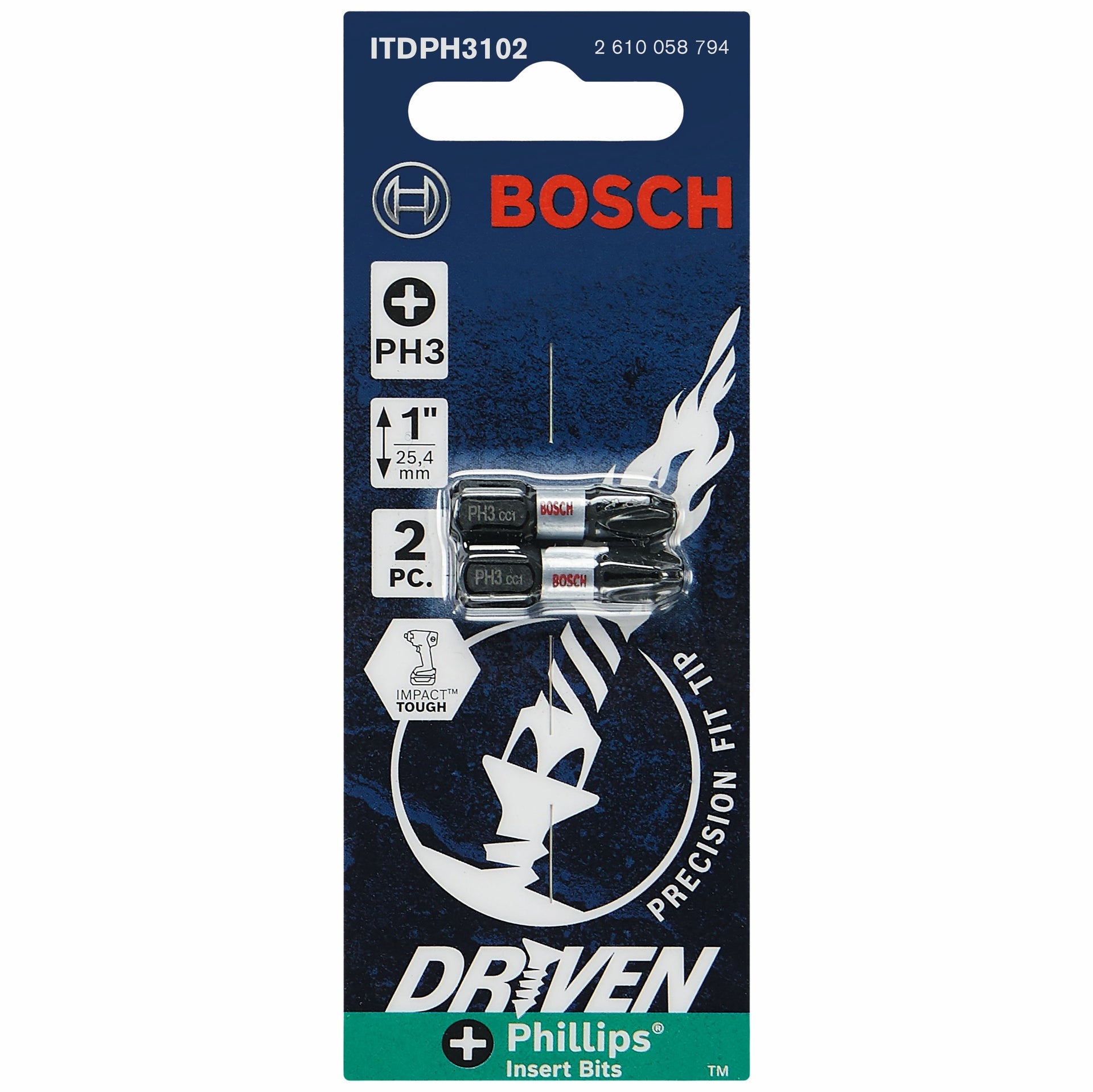 - BOSCH ITDPH3102 2 pc. Driven 1 In. Impact Phillips® #3 Insert Bits