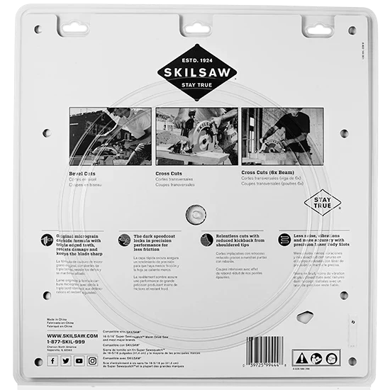 Original Micrograin carbide formula with triple edged teeth, resists damage and keeps the blade sharp. The dark speedcoat locks in precision performance for less friction. Shouldered tips provide relentless cuts with reduced kickback. There's less noise, vibrations and more accuracy with precision Laser Body Slots.