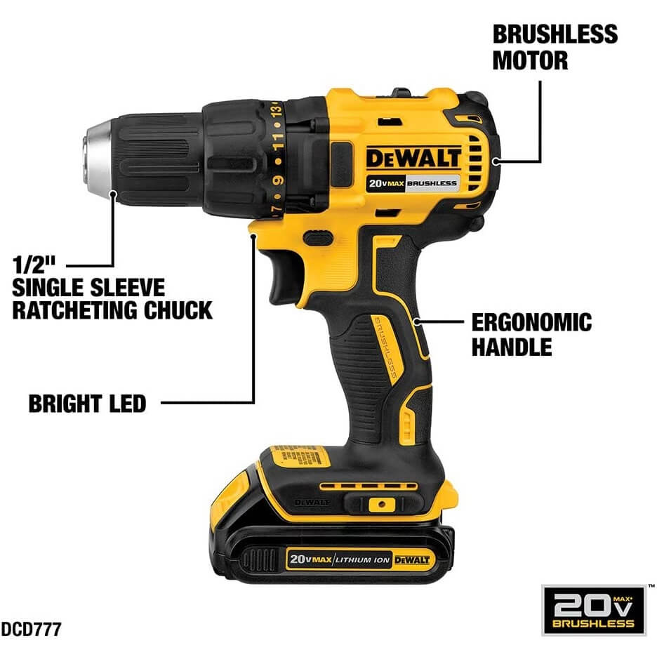 DEWALT DCD777C2 20V MAX* Compact Brushless Drill/Driver