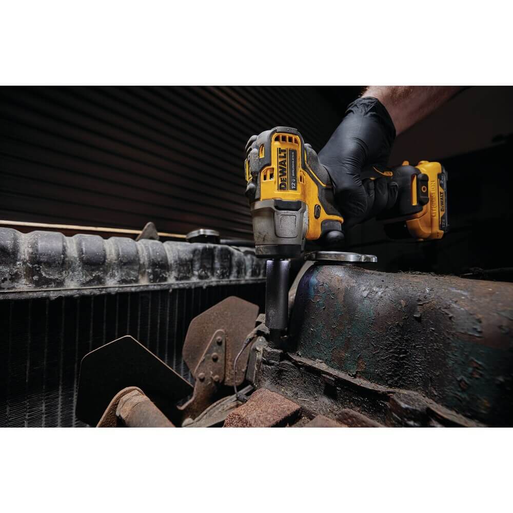 The XTREME 12V MAX* Brushless 3/8 in. Cordless Impact Wrench is compact and performance packed. This cordless impact wrench is designed for hard-to-reach applications requiring tightening or loosening of nuts and bolts. At only 5.1 in. long with 1,500 in-lbs. of fastening torque and 2,400 in-lbs. of breakaway torque, it is packed to perform. It also features 3 LEDs positioned on the nose to illuminate work areas. This impact wrench is equipped with a 3-mode switch with Precision Wrench™ to help prevent overtightening and runoff. Battery and charger sold separately.