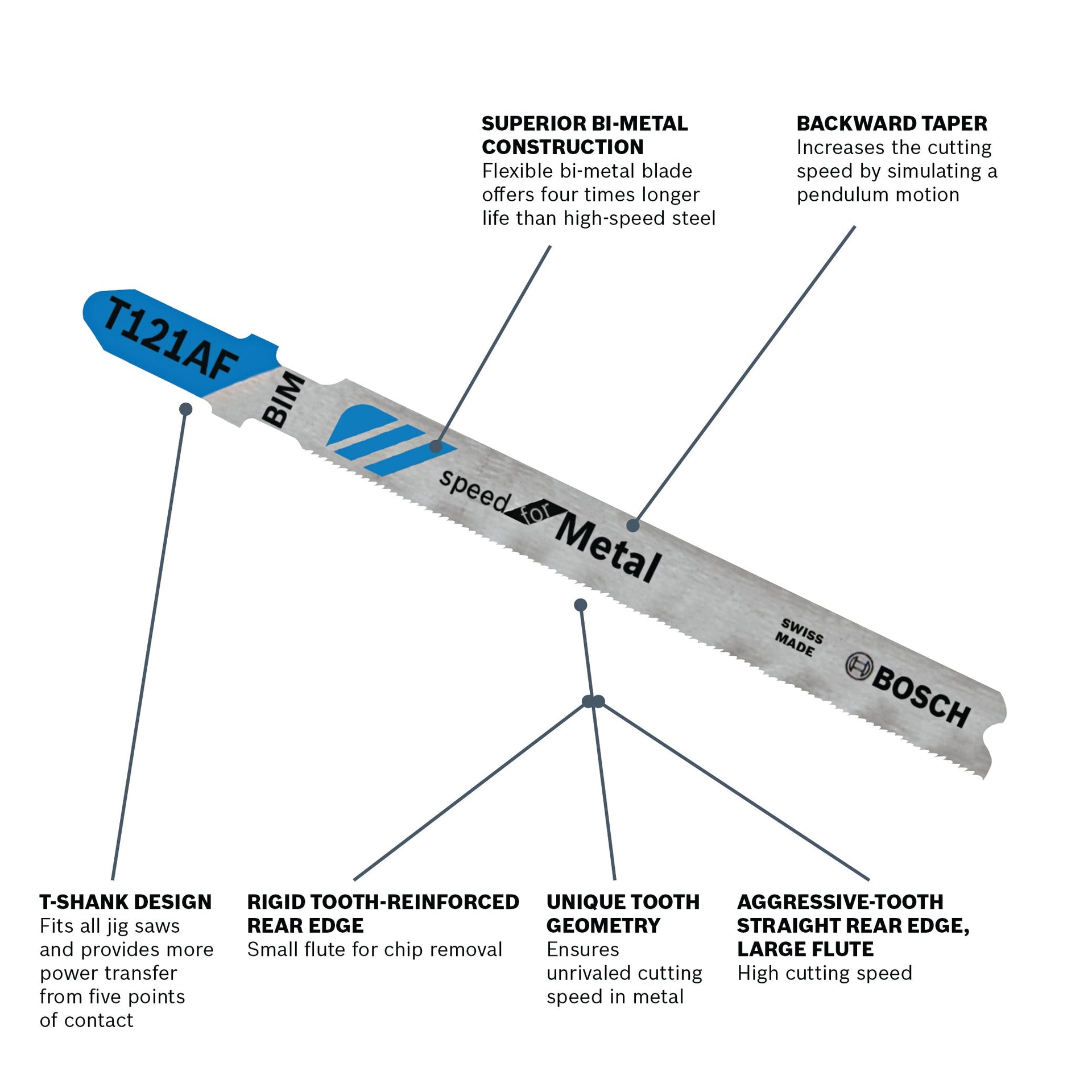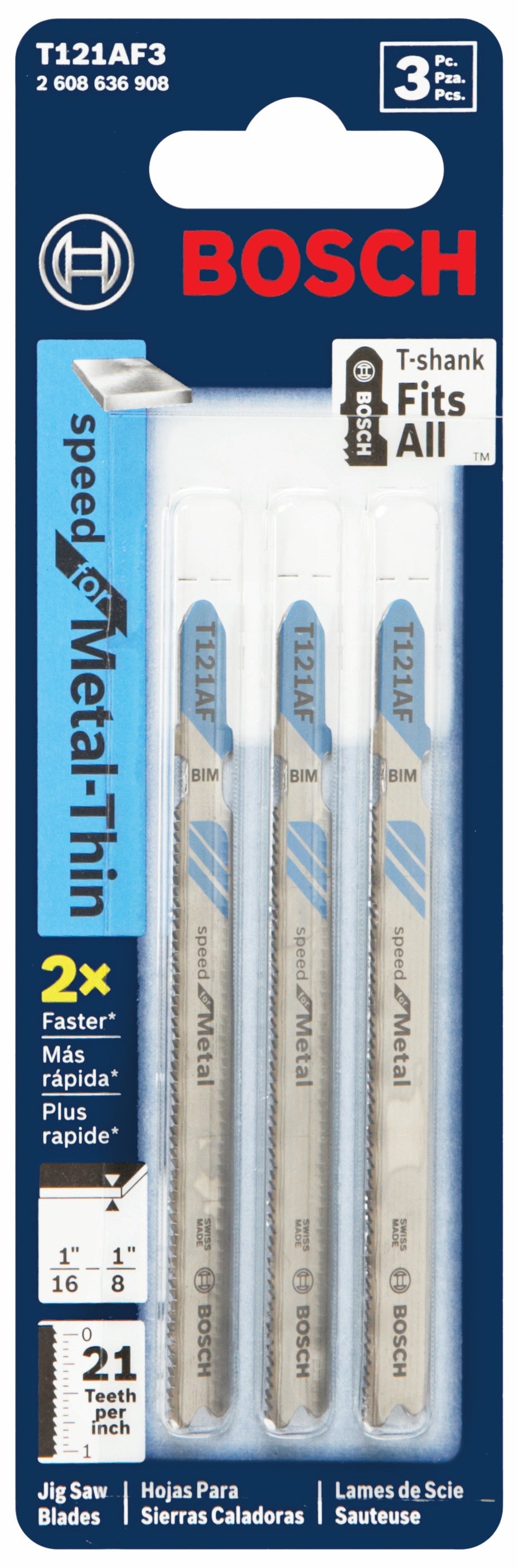 - BOSCH T121AF3 3 pc. 3-5/8 In. 21 TPI Speed for Metal T-Shank Jig Saw Blades