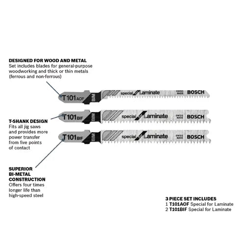 - BOSCH T503 3 pc. Hardwood/Laminate Flooring T-Shank Jig Saw Blade Set