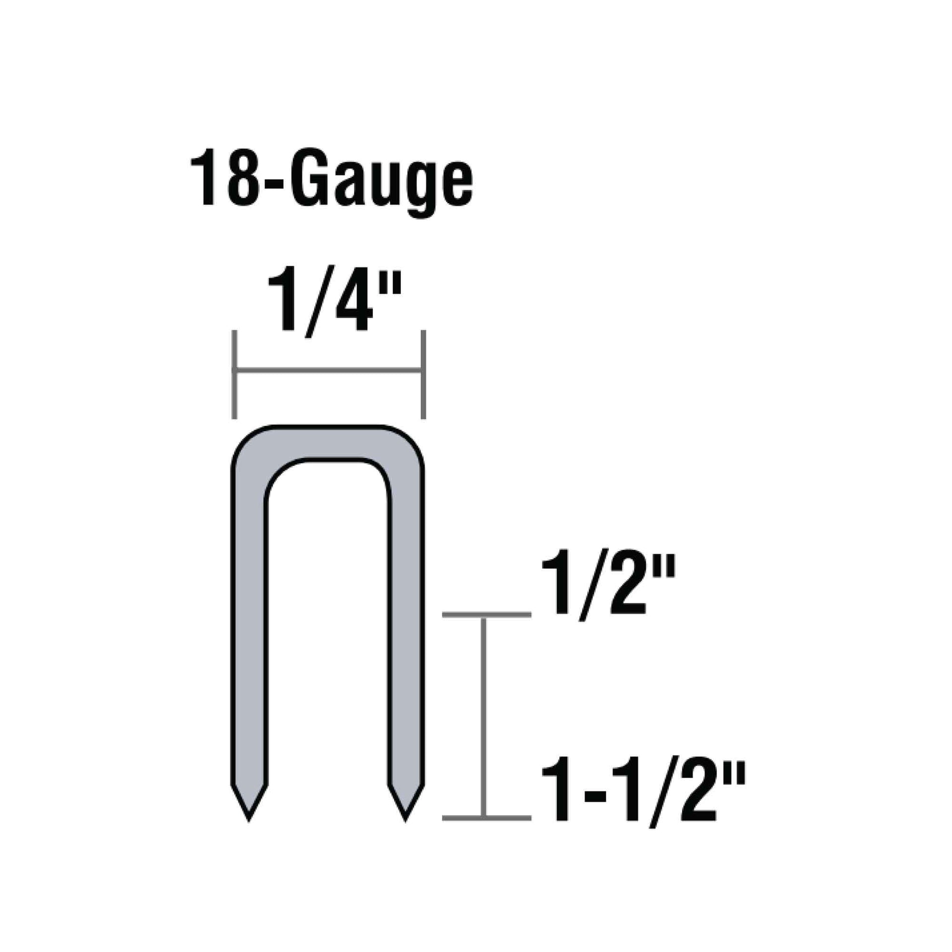 FASTENERS: Accepts 18-gauge narrow crown staples ranging in length from 1/2-in up to 1-1/2-in