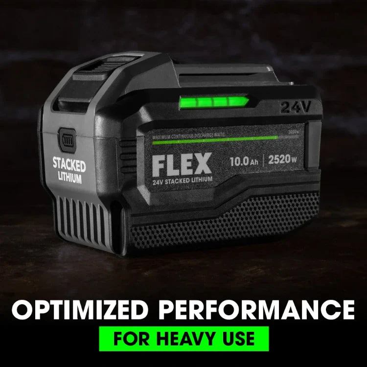 200% more power with 24V lithium, 300% longer battery life with THERMA-TECH™+ heat management, 100% faster charging; 100% cross-compatible with all FLEX 24V tools and chargers