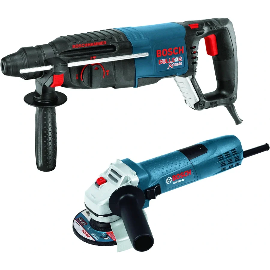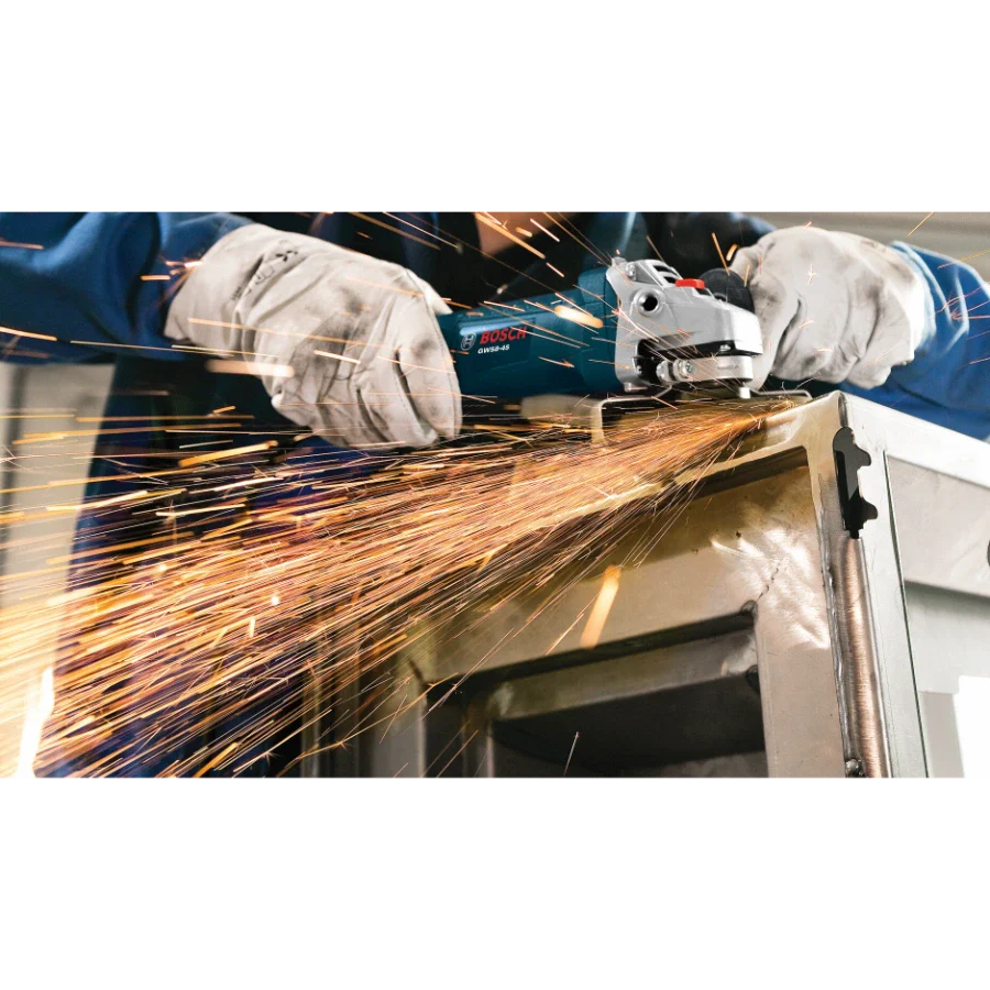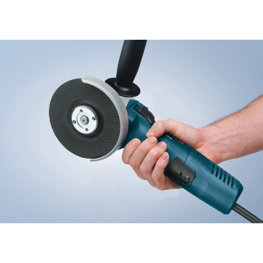 The Bosch GWS8-45 4-1/2 In. Angle Grinder is a light, ergonomic grinder, with a slender grip circumference that allows users to work comfortably for extended periods. This 4.2 Lbs. tool delivers plenty of power, with a 7.5 Amp motor that produces 11,000 no-load RPM. It has directed air flow that diverts dust away from vital components. Bosch's Service Minder brush system shuts off the tool when preventative maintenance is required, which helps to eliminate guesswork. This grinder has a two-position side handle. It has a burst-protection quick adjustable guard designed for user protection, as well as a large spindle lock for easy disc changes.