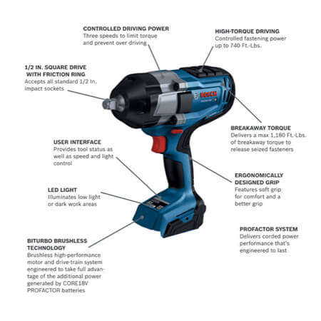 BOSCH GDS18V-740N PROFACTOR 18V 1/2 In. Impact Wrench with Friction Ring (Bare Tool)