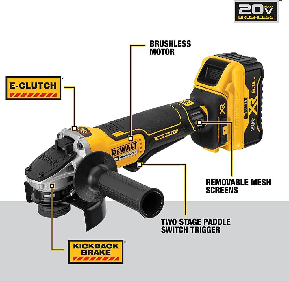 DEWALT DCG413R2 4.5 in. 20V MAX* XR® Paddle Switch Small Angle Grinder Kit with Kickback Brake