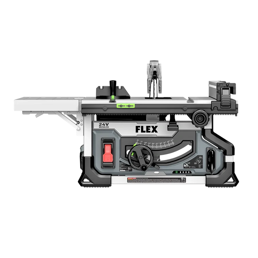 Dominate long cuts and rip plywood and OSB sheets with the FLEX 24V 8-1/4” Table Saw. This cordless table saw delivers best-in-class rip capacity with its folding side extension table for 20.5-inch blade left clearance and 25-inch blade right clearance, perfect for large sheets of plywood and OSB. Its rack & pinion fence system allows quick alignment and accurate cuts. A rechargeable LED fence worklight lights up your workpiece and is removable for added lighting versatility around the jobsite. A battery power indicator displays the battery capacity on the front panel of the saw for quick and easy charge status checks. The portable table saw is compatible with the FLEX 24V Power Adapter (FX0511, sold separately) to unlock all-day AC power for extended cutting sessions. This cordless table saw dominates with the FLEX Stacked Lithium Advantage: unmatched battery power, runtime, and charging capability. The table saw set includes the table saw, a 6.0Ah Stacked Lithium battery, 280W Rapid Charger, rechargeable LED fence light, miter gauge, push stick, 8-1/4-inch 24T blade, non-through cut riving knife, modular guard system, anti-kickback pawls, and blade change wrench. It’s all protected by the FLEX Limited Lifetime Warranty when registered within 30 days of purchase at registermyFLEX.com through December 31, 2024.