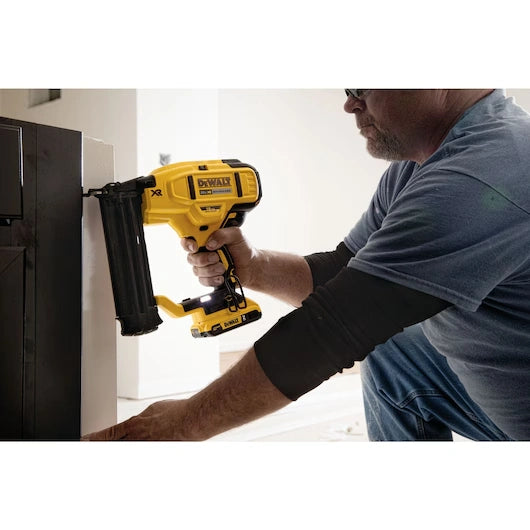 The DEWALT DCN680 18 Gauge Brad Nailer drives 18 Gauge brad nails from 5/8 in. to 2-1/8 in. which makes it ideal for fastening decorative molding, casing, kitchen crown, and shoe molding. With its brushless motor powered by a DEWALT 20V MAX* Lithium-Ion battery the DCN680 is ready to work without the hassle of using gas, compressor, and hose. Tackle jobs both large and small with the features of a pneumatic tool and the freedom of cordless. * - Maximum initial battery voltage (measured without a workload) is 20 volts. Nominal voltage is 18.