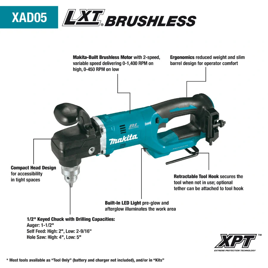 Makita XAD05Z 18V LXT Lithium-Ion Brushless Cordless 1/2" Right Angle Drill