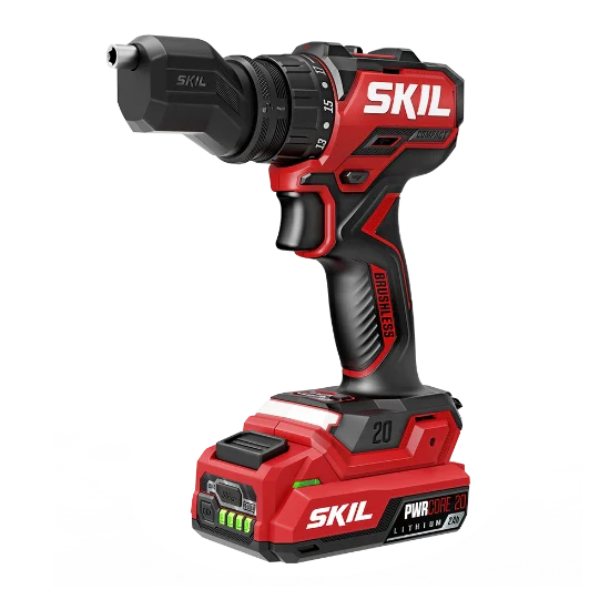 Easily access hard-to-reach areas like tight cabinet corners and edges with the SKIL Brushless 20V Compact Multi-Head Drill Driver. Four interchangeable attachments deliver outstanding versatility with a 3/8-inch keyless chuck attachment, locking 1/4-inch hex attachment, right angle attachment for 90-degree drilling and fastening, and offset attachment for tight corners and edges. The cordless multi-head drill driver features a digital brushless motor that delivers up to 450 inch-pounds of torque packed into a compact and lightweight design for working in hard-to-reach areas with less fatigue. A strip LED worklight provides bright, broad illumination and lights up your workspace for up to 10 minutes. The variable speed trigger delivers precise speed control. Charge the battery or personal devices with the battery’s 100W USB-C port. When it’s time to recharge the battery, the multifunctional charger ditches the traditional power tool charging dock for a compact, convenient format that can plug in anywhere and fully charge the 2.0Ah battery in 55 minutes. The cordless drill driver kit includes the multi-head drill driver, 3/8-inch keyless chuck attachment, locking hex bit holder attachment, right angle attachment, offset attachment, 2.0Ah USB-C battery, 45W USB-C PD charger, USB-C charging cable, belt clip, bit, and bag.
